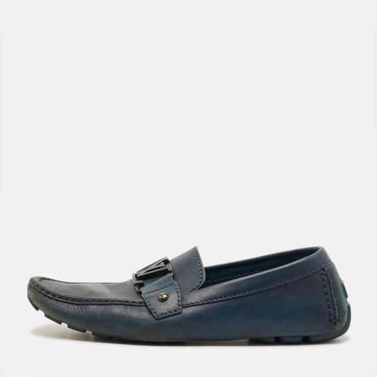 Pre Owned Louis Vuitton Monte Carlo Size 42 Blue Leather Loafers