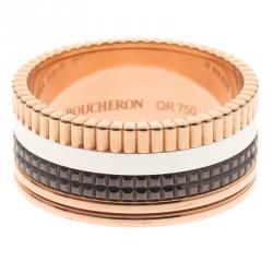 Boucheron Classique Quatre Three Tone 18k Gold & Brown PVD Large Ring Size 69