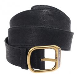 Dolce & Gabbana Black Leather DG Logo Buckle Belt 90CM