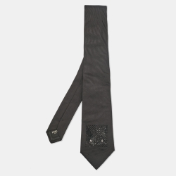 Fendi Grey Zucca Jacquard Silk Traditional Tie