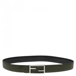 Fendi Green and Black Leather Logo Buckle Reversible Belt 90CM