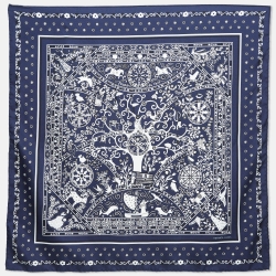 Hermes Blue Peuple du Vent Silk Bandana Scarf