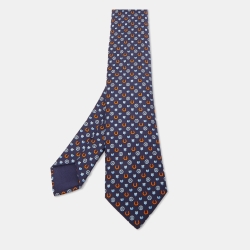 Hermès Navy Blue 7 Hermès Luck Printed Silk Slim Tie