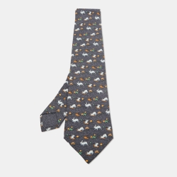 Hermes Grey Rabbit Print Silk Classic Tie