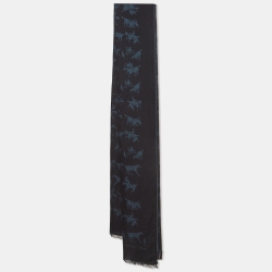 Hermes Bicolor Equestrian Jacquard Reversible Cashmere & Silk Muffler