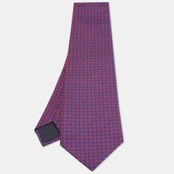 Hermes Blue/Red H Pattern Jacquard Silk Tie