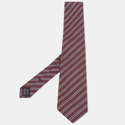 Tom Ford Brown Diagonal Stripe Patterned Silk Tie
