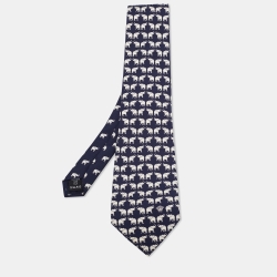 Gianni Versace Vintage Navy Blue & Grey Printed Silk Traditional Tie