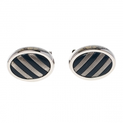 Montblanc Silver & Black Obsidian Oval Cufflinks