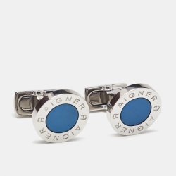 Aigner Silver Tone Logo Cufflinks