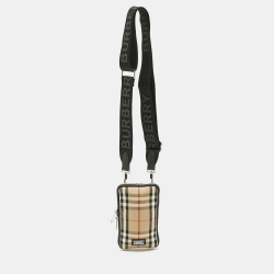 Burberry Green/Grey Check Canvas and Leather Phone Pouch