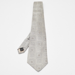 Gucci Vintage Grey Logo Jacquard Silk Tie