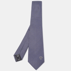 Versace Blue Square Pattern Jacquard Silk Tie