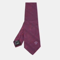 Versace Burgundy Geometric Pattern Silk Tie