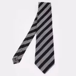 Gianfranco Ferre Grey & Black Diagonal Striped Jacquard Tie