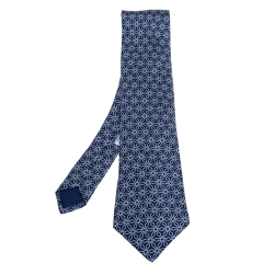 Chanel Navy Blue Geometric Jacquard Silk Tie