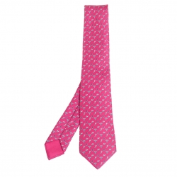 Hermes Pink 7 Flying Hermes Silk Twill Tie