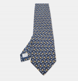 Hermes Blue Classic Pattern Print Silk Tie
