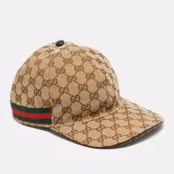 Gucci Beige Logo Monogram Web Stripe Detail Canvas Baseball Cap M