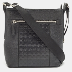 Salvatore Ferragamo Black Gancini Embossed Leather Messenger Bag