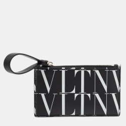 Valentino Black/White Leather VLNT Zip Pouch