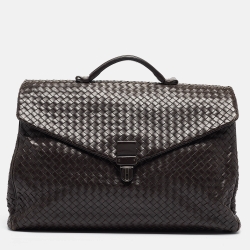 Bottega Veneta Dark Brown Intrecciato Leather Envelope Flap Briefcase