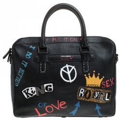 Dolce & Gabbana Black Leather Embellished Patch Briefcase