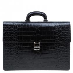 Montblanc Black Alligator Embossed Leather Double Gusset Briefcase