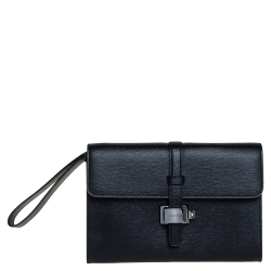 Montblanc Black Leather Westside Flap Wristlet Clutch