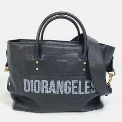 Christian Dior Diorangels Shoulder Bag With Logo Studs Leather Tote Bag Black