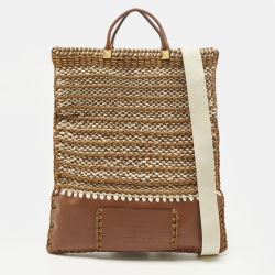 Valentino Identity Woven Brown/Tan Leather and Rope Tote