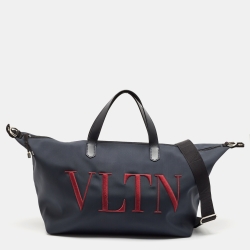 Valentino Dark Blue Leather and Nylon VLTN Travel Tote