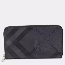 Burberry Charcoal London Check Coated Canvas Zip Around Continental Wallet