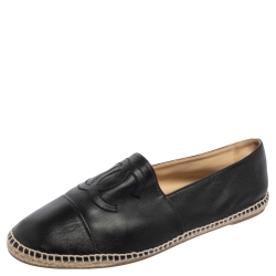 Chanel Black Leather CC Cap Toe Espadrilles Flats Size 44