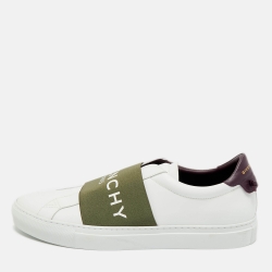 Givenchy White/Green Elastic and Leather Urban Street Slip On Sneakers Size 43