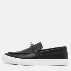Hermes Black Leather Game Slip On Sneakers Size 45
