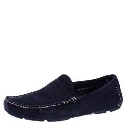 Salvatore Ferragamo Blue Suede Penny Driving Loafers Size 43