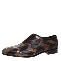Salvatore Ferragamo Brown Ostrich Leather Gris Oxfords Size 43.5