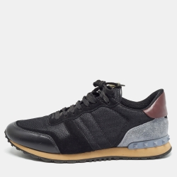 Valentino Black Camo Fabric, Leather and Suede Rockrunner Sneakers Size 43