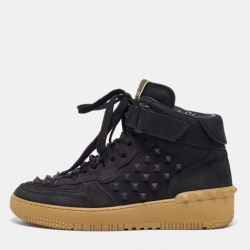 Valentino Black Nubuck Leather Rockstud Mid Top Sneakers Size 40