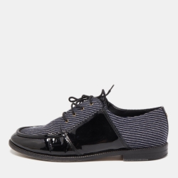 Chanel Black/Navy Blue Patent Leather and Fabric CC Lace Up Derby Size 41