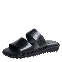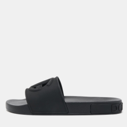 Dolce & Gabbana Black Rubber Logo Flat Slides Size 43