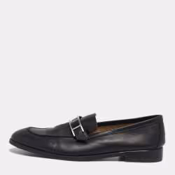 Hermes Black Leather Buckle Loafers Size 42