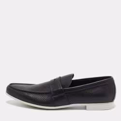 Prada Navy Blue Perforated Leather Slip On Loafers Size 43