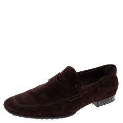 Tod's Brown Suede Bow Slip On Loafers Size 45
