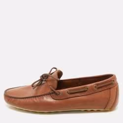 Loro Piana Brown Leather LP Dot Walk Slip On Loafers Size 40