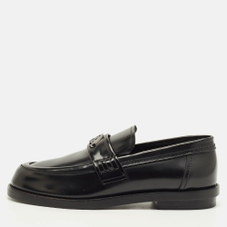 Alexander McQueen Size 43 Black Leather Logo-Plaque Loafers