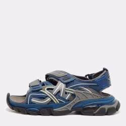 Balenciaga Track Size 43 Grey Faux Leather and Rubber Slingback Sandals