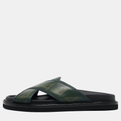 Dior Blue/Black Oblique Canvas and Leather Aqua Slides Size 45