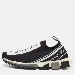 Dolce & Gabbana Sorrento Size 42 Black/White Knit Fabric Slip On Sneakers